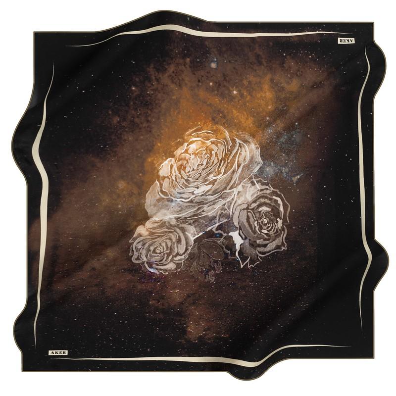 Add sparkle to your outfit with this dreamy and magical silk scarf that features roses in the twilight background. Great to be worn as a head scarf, hair wrap, or even as a top. Unravel your creativity with this versatile fashion piece!
