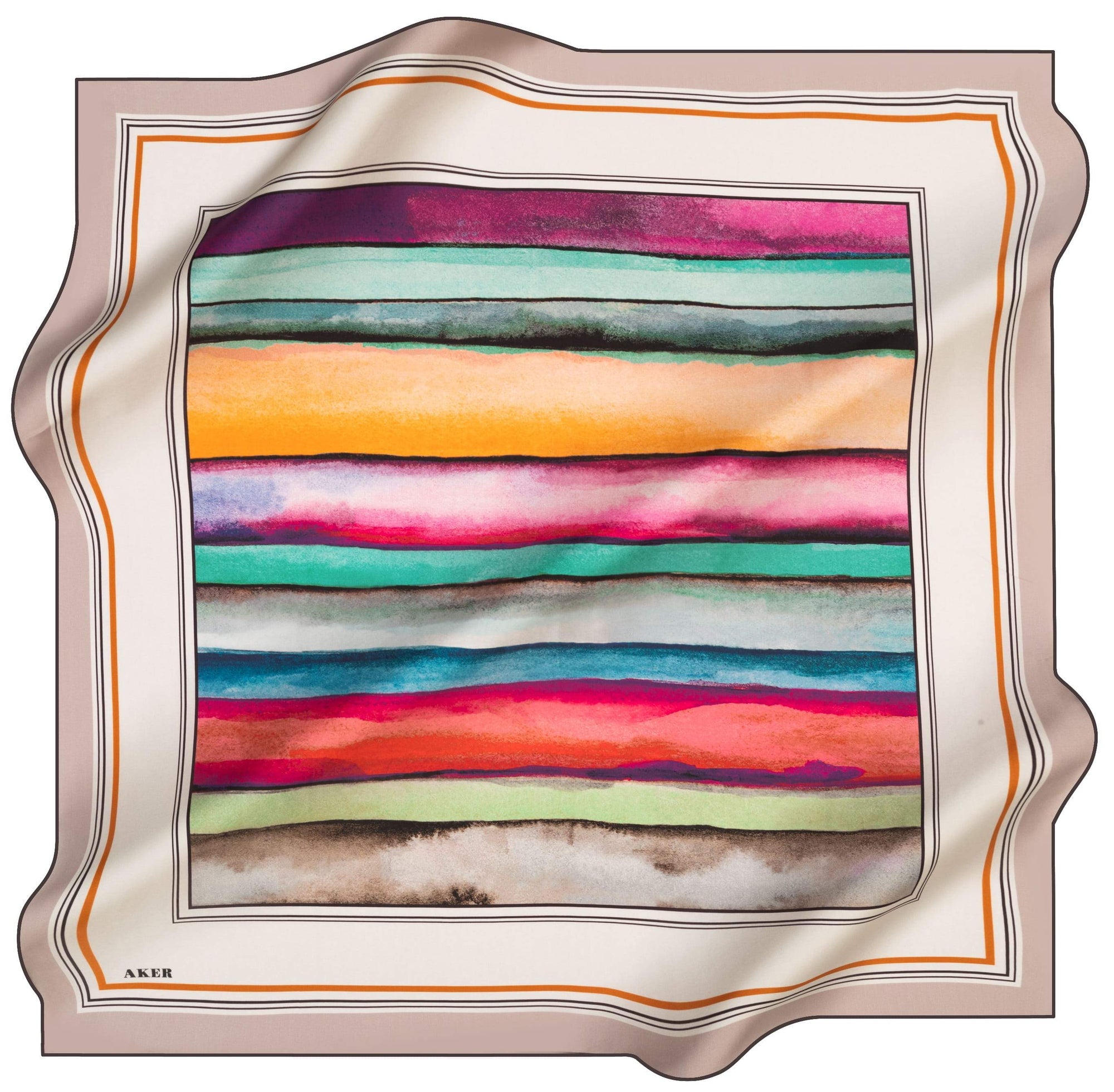 Featuring a beautiful blend of colours and a simple geometrical pattern, Aker Eliana silk scarf is a fashion accessory that is perfect for any season and occassion.