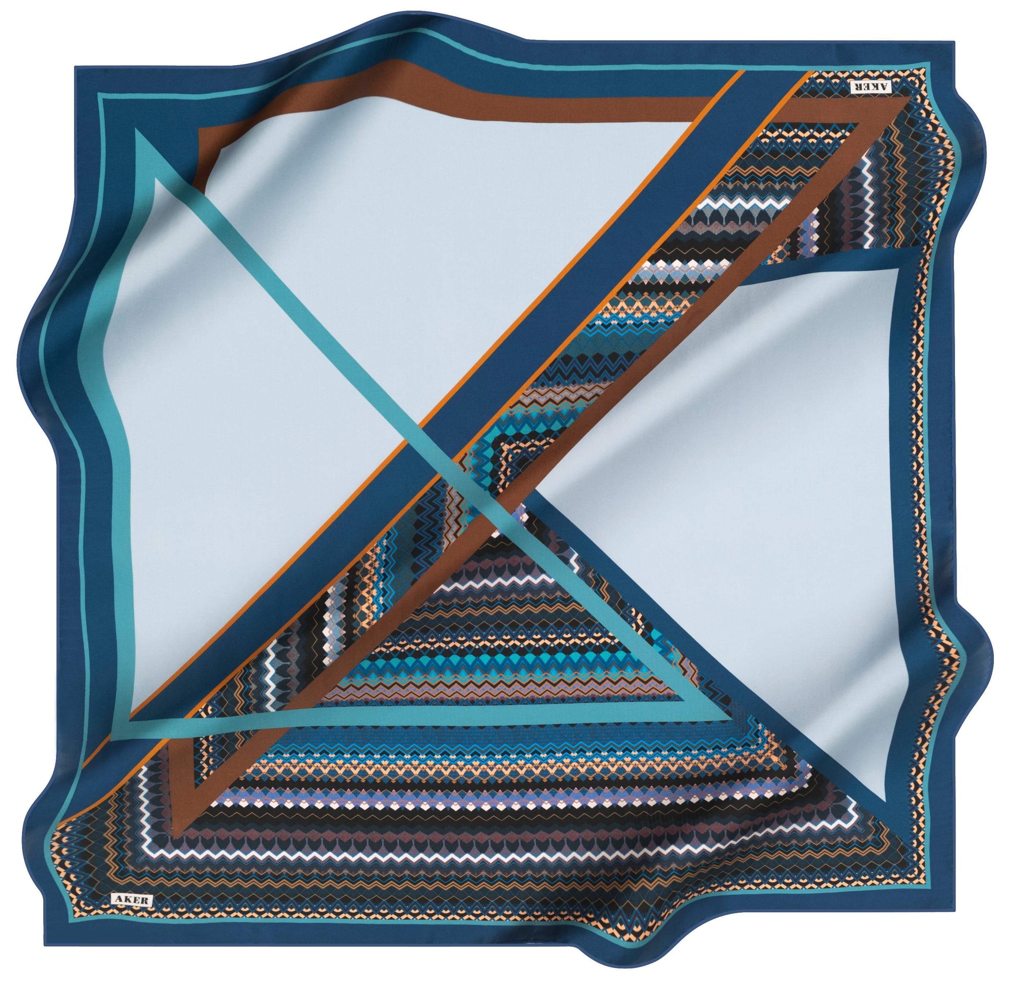 Look fabulous with this beautiful silk twill scarf that features geometrical pattern with an abstract twist with harmonizing colour to create a chic and edgy look. Wear this silk scarf as a hair wrap or dress scarf to compliment your style for the day!