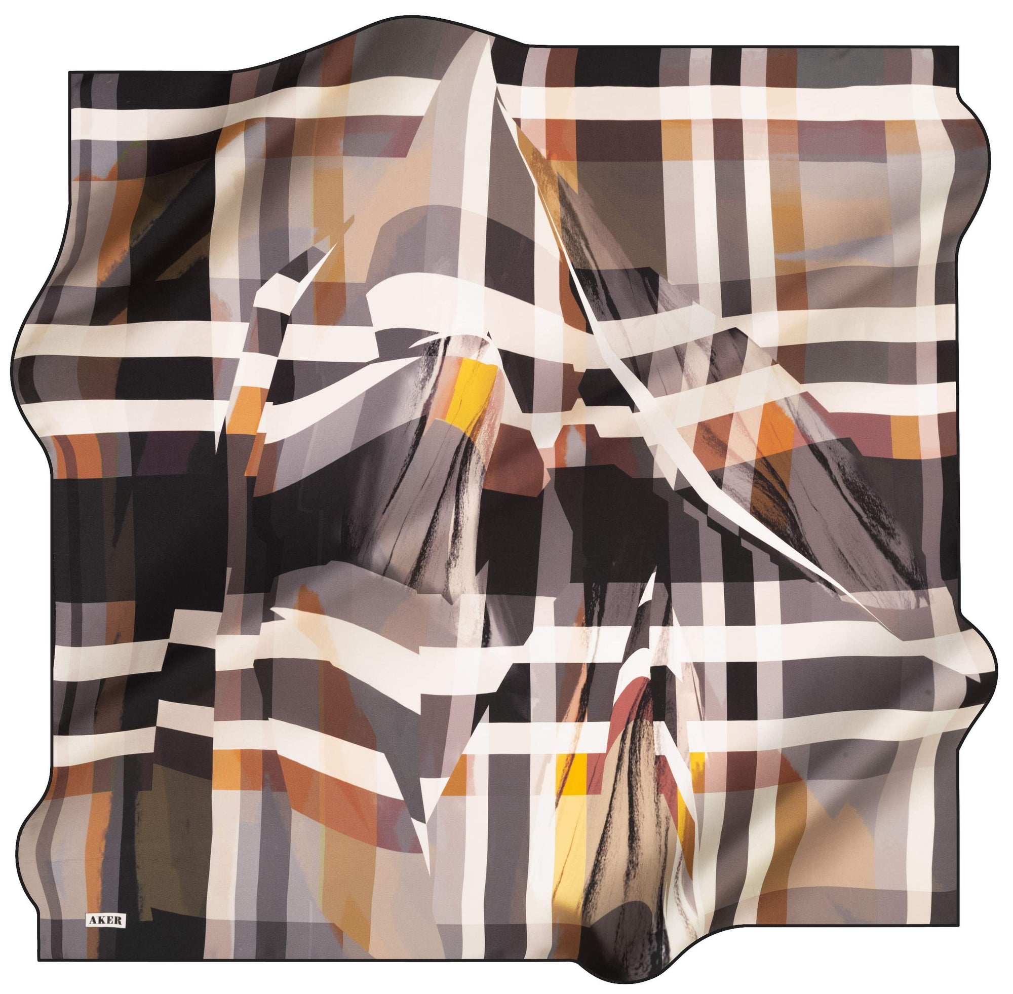 Look fabulous with this beautiful silk twill scarf that features geometrical pattern with an abstract twist with harmonizing colour to create a chic and edgy look. Wear this silk scarf as a hair wrap or dress scarf to compliment your style for the day!