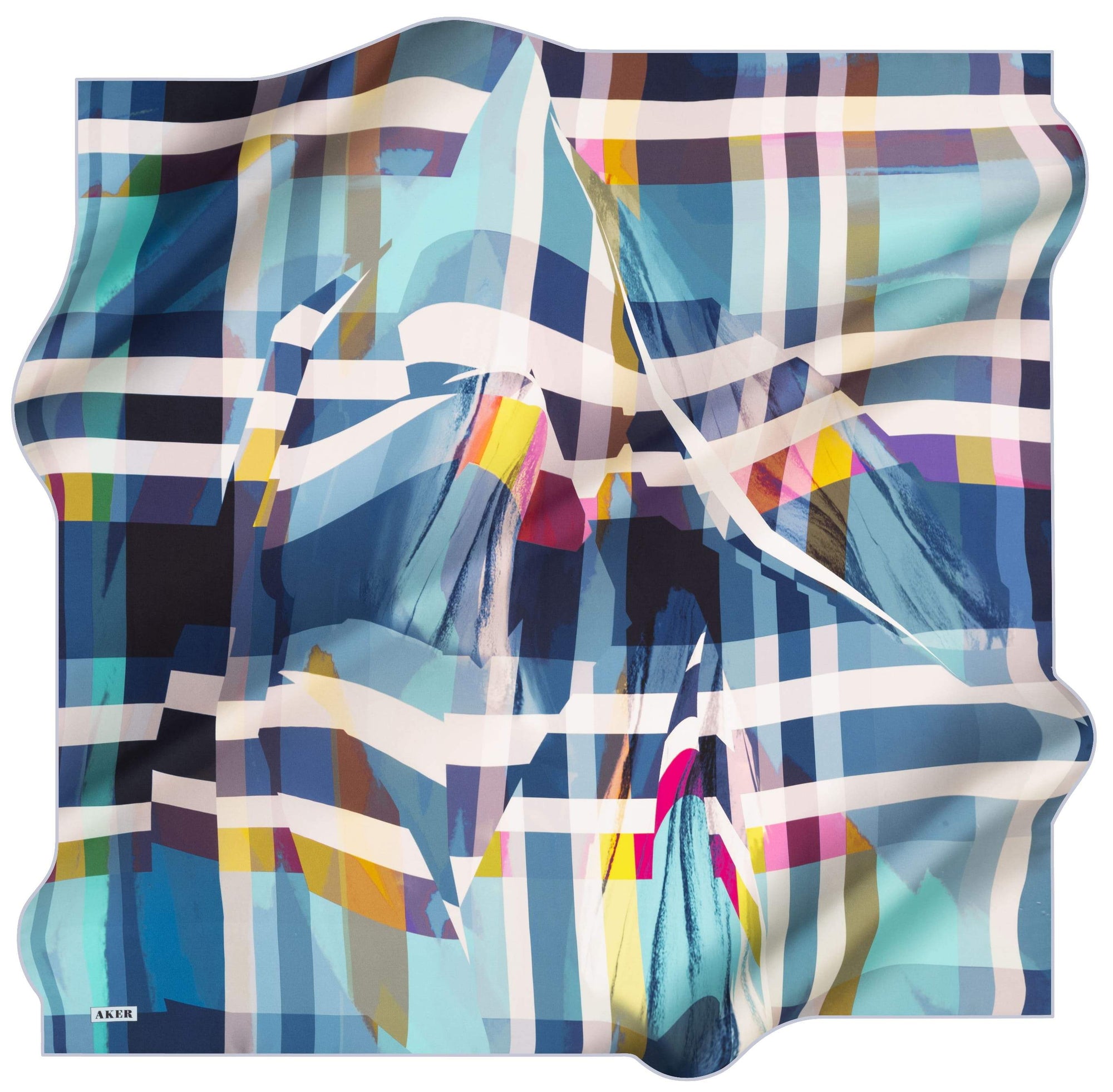 Look fabulous with this beautiful silk twill scarf that features geometrical pattern with an abstract twist with harmonizing colour to create a chic and edgy look. Wear this silk scarf as a hair wrap or dress scarf to compliment your style for the day!
