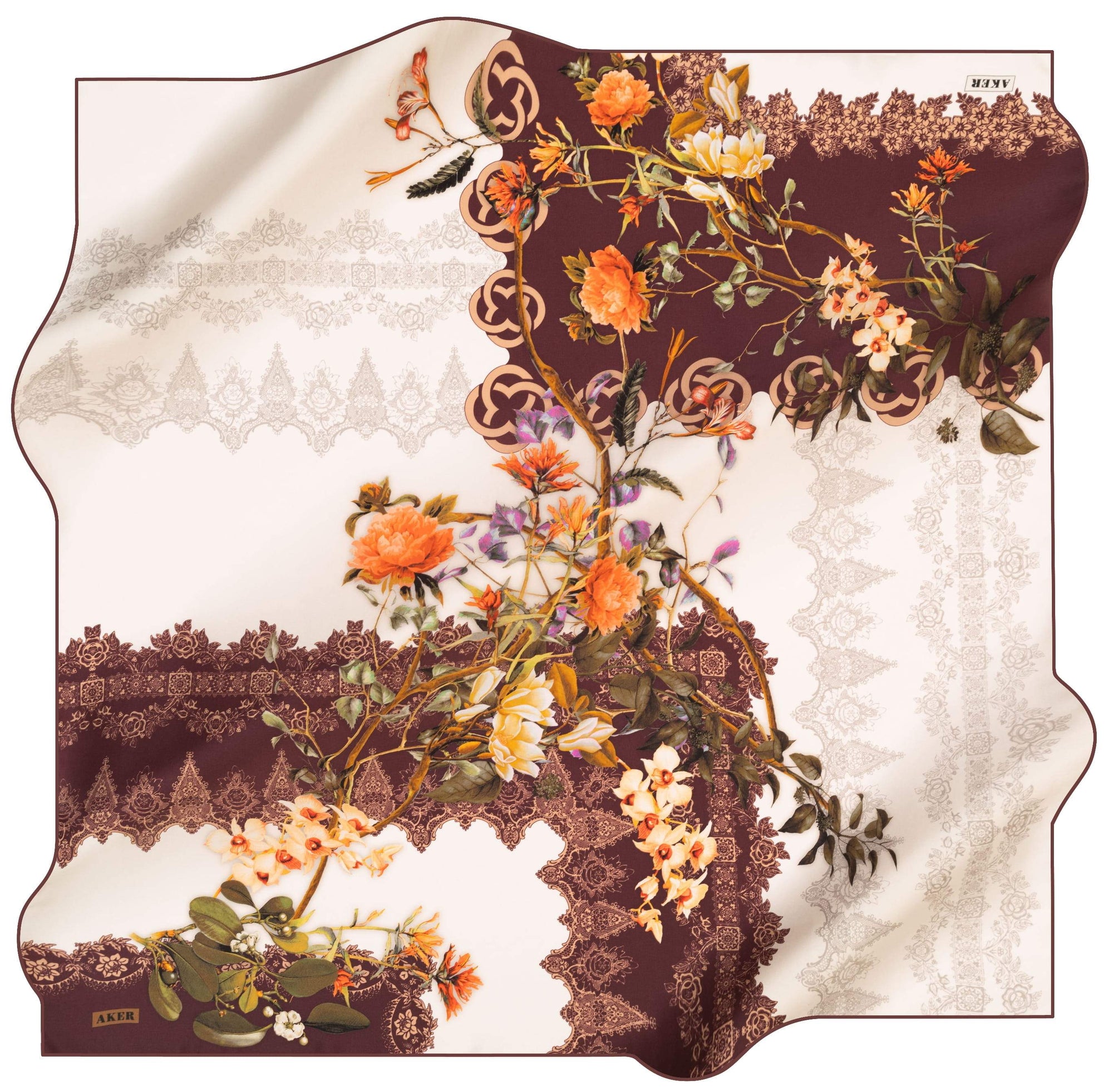 Look fabulous with this beautiful silk twill scarf that features a vintage floral print and lace to create a classy sophisticated look. Wear this silk scarf as a hair wrap or dress scarf to compliment your style for the day!