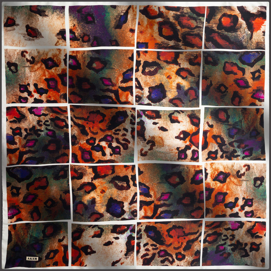 Feel glamorous with Aker Lori silk scarf that features a stunning cheetah print with an abstract twist. This silk scarf will never go out our style and it is a must-have for every modern women's wardrobe.
