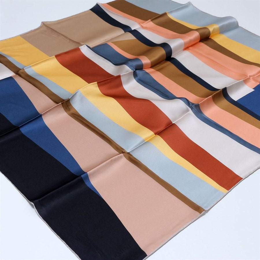 Create a lasting impression at work or at play with this geometrical-inspired scarf with a retro color twist. This is a timeless design that never goes out of style. Perfect for busy working ladies or young professional alike.