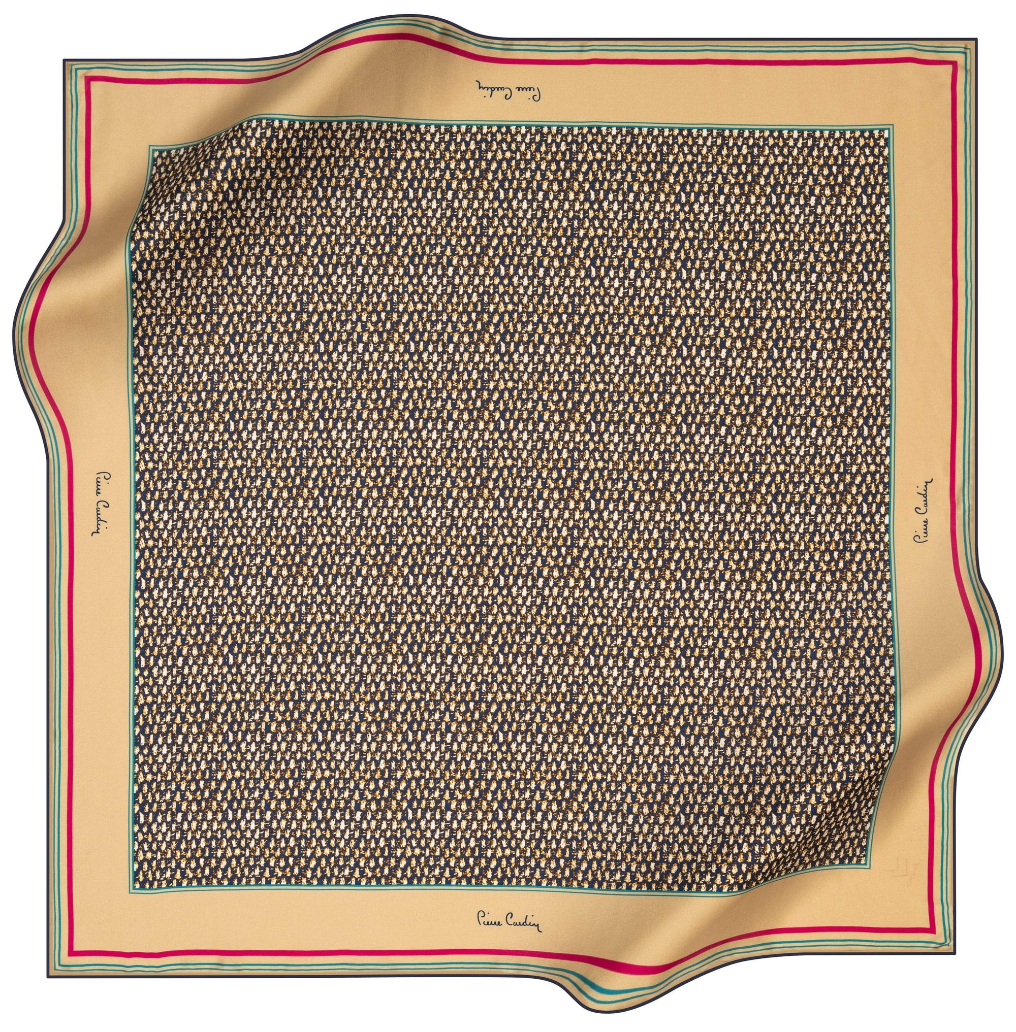 This Pierre Cardin Signature silk scarf is an essential scarf for your everyday wear. This timeless classic design will not go out of style and it will grace your outfit elegantly. Perfect as a formal scarf or a casual weekend ensemble.