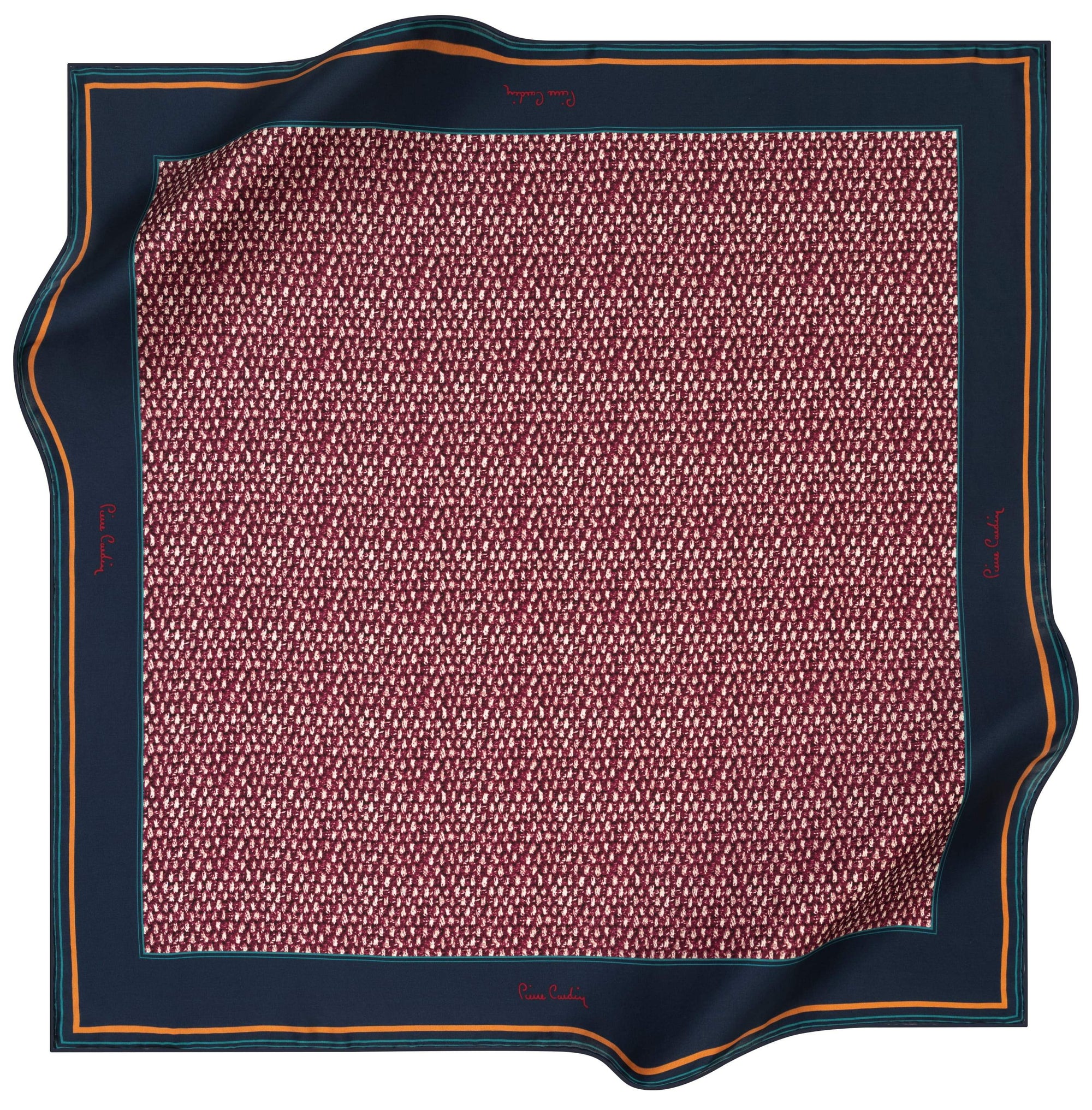 This Pierre Cardin Signature silk scarf is an essential scarf for your everyday wear. This timeless classic design will not go out of style and it will grace your outfit elegantly. Perfect as a formal scarf or a casual weekend ensemble.