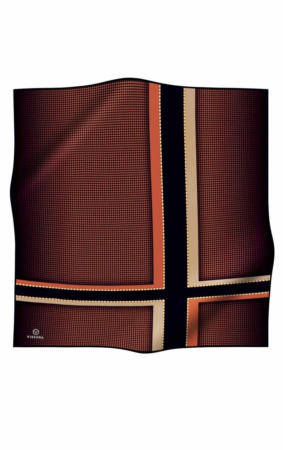 Invoke class and empowerment with a vibrant silk twill scarf by Vissona. Featuring geometrical patterns, this silk scarf is a timeless accessory that will stand the test of time and fashion.