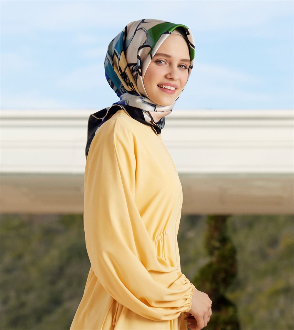Fun and artistic floral abstract in vibrant shades bring a sense of freshness to classic silk scarves. The Armine Arty Floral Silk Scarf features a unique celebration of beauty and art. The scarf is crafted from lightweight silky twill that flows effortlessly no matter how you style it. Style it in a minimal way to embrace the floral motifs that are scattered throughout the hijab.