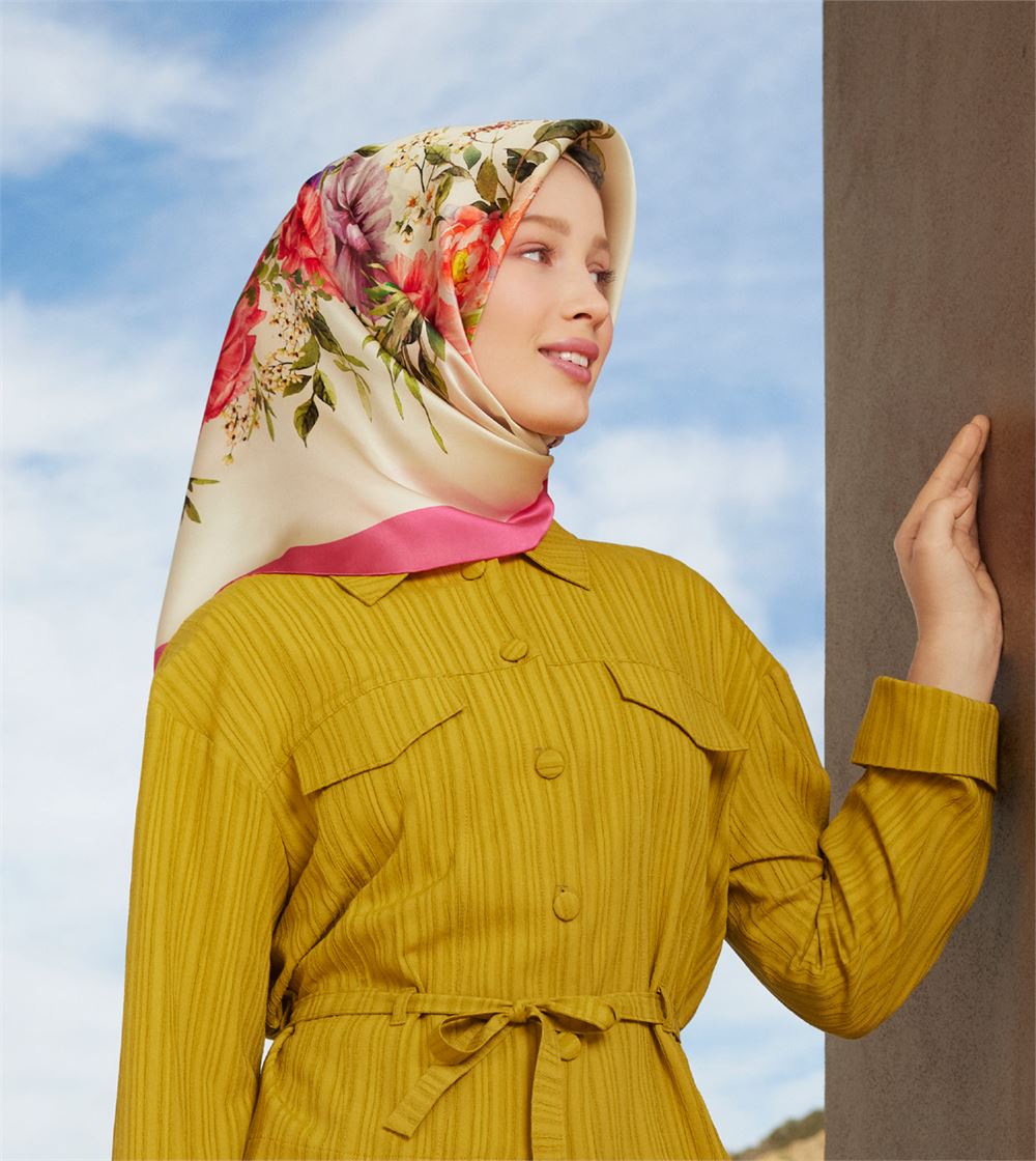 The Armine Delia Floral Silk Scarf features a unique celebration of beauty and art. It features a sunflower pattern with an abstract twist. The scarf is crafted from lightweight silky twill that flows effortlessly no matter how you style it. Style it in a minimal way to embrace the floral motifs that are scattered throughout the hijab.