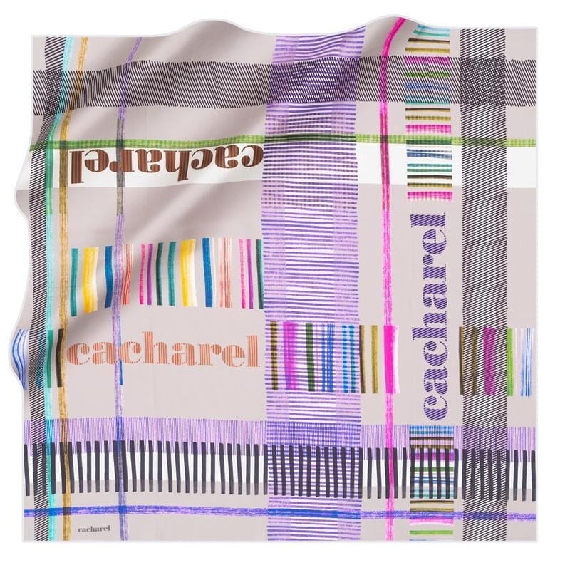 Add a dash of contemporary flair to your wardrobe with this stylish Cacharel silk scarf, featuring a modern plaid pattern with bold pops of color. Crafted from the finest silk, this scarf boasts a smooth, luxurious texture and an effortlessly chic drape. The striking combination of earthy tones, vibrant stripes, and the Cacharel logo creates a unique, fashion-forward piece that is perfect for enhancing both casual and formal looks. Whether worn around the neck, on your handbag, or as a headscarf, this versatile accessory will elevate your style with sophistication and creativity.