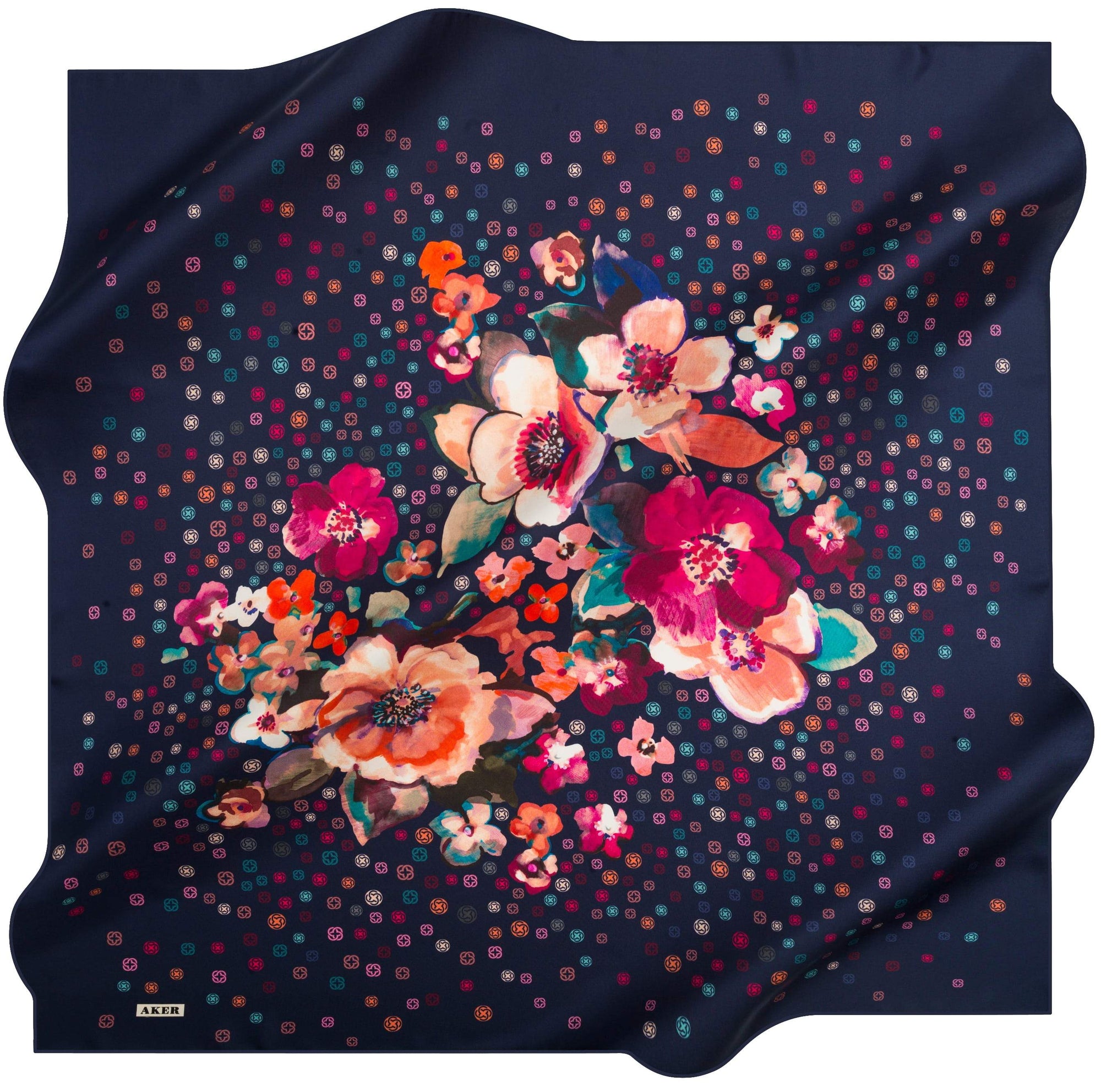 This new and beautiful silk scarf from Aker is inspired by watercolor floral painting in a gorgeous blue background. Pair this beautiful scarf with any outfit for sheer elegance and sophistication.