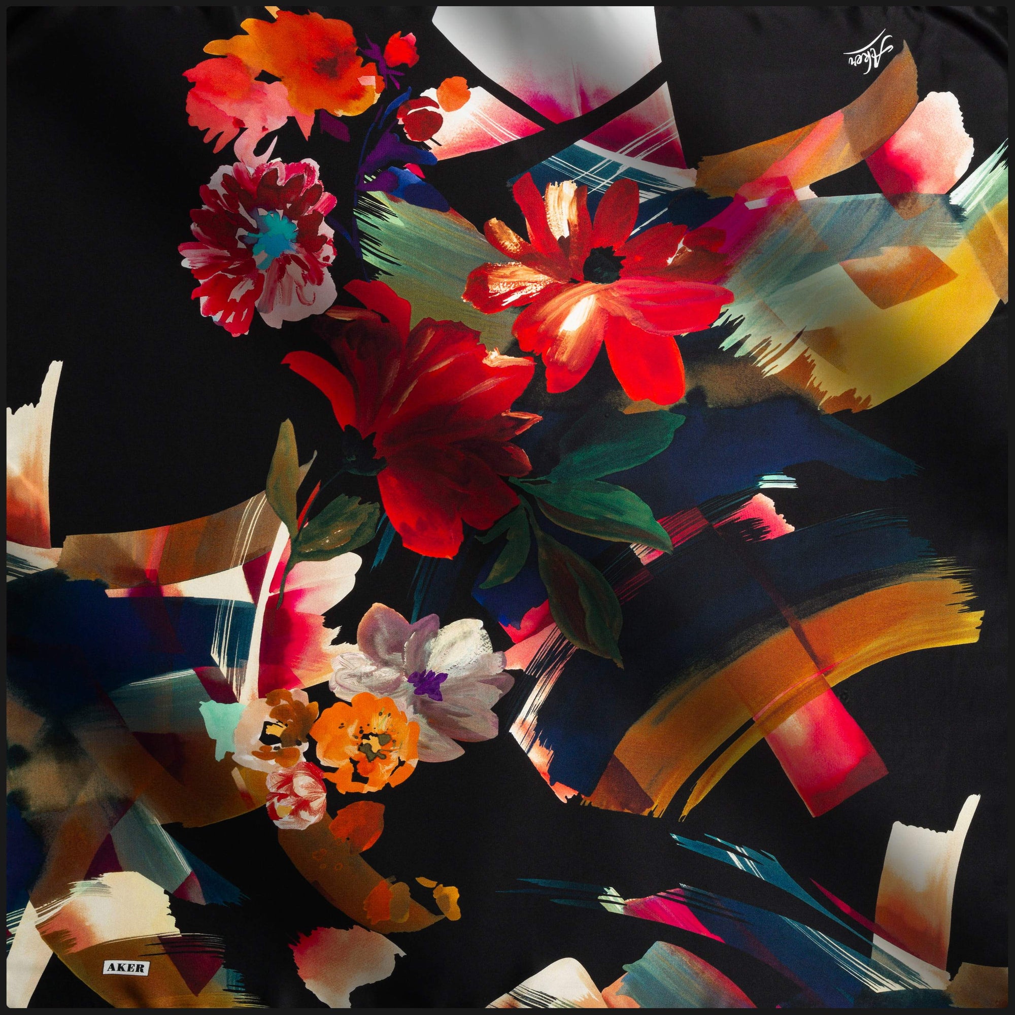 This stunning silk scarf Gloria features a gorgeous floral display of Autumn flowers. This designer silk scarf will compliment your outfit. This is the perfect way to add a dash of personality.