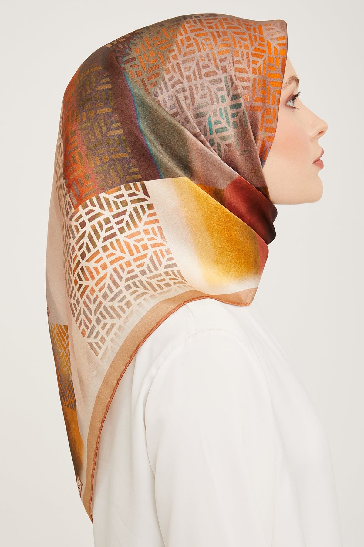 Contrasting yet harmonious colors, a sophisticated designer pattern, and a versatile shape make Armine Andaz’s Women Silk Scarf perfect for adding a touch of luxury to any style. Whether draped over your head, wrapped as a hair tie, or wrapped like a turban, its trend-setting look and premium feel will have you ready to make any bold fashion statement.