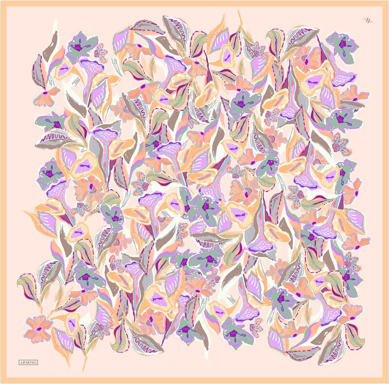 Celebrate the beauty of nature with the Armine Botanical Harmony Turkish Silk Scarf, a breathtaking blend of floral artistry and refined elegance. Featuring a hand-drawn composition of lush botanical elements, this design intertwines delicate blooms in soft blue, coral, and green hues, set against a sophisticated neutral backdrop.