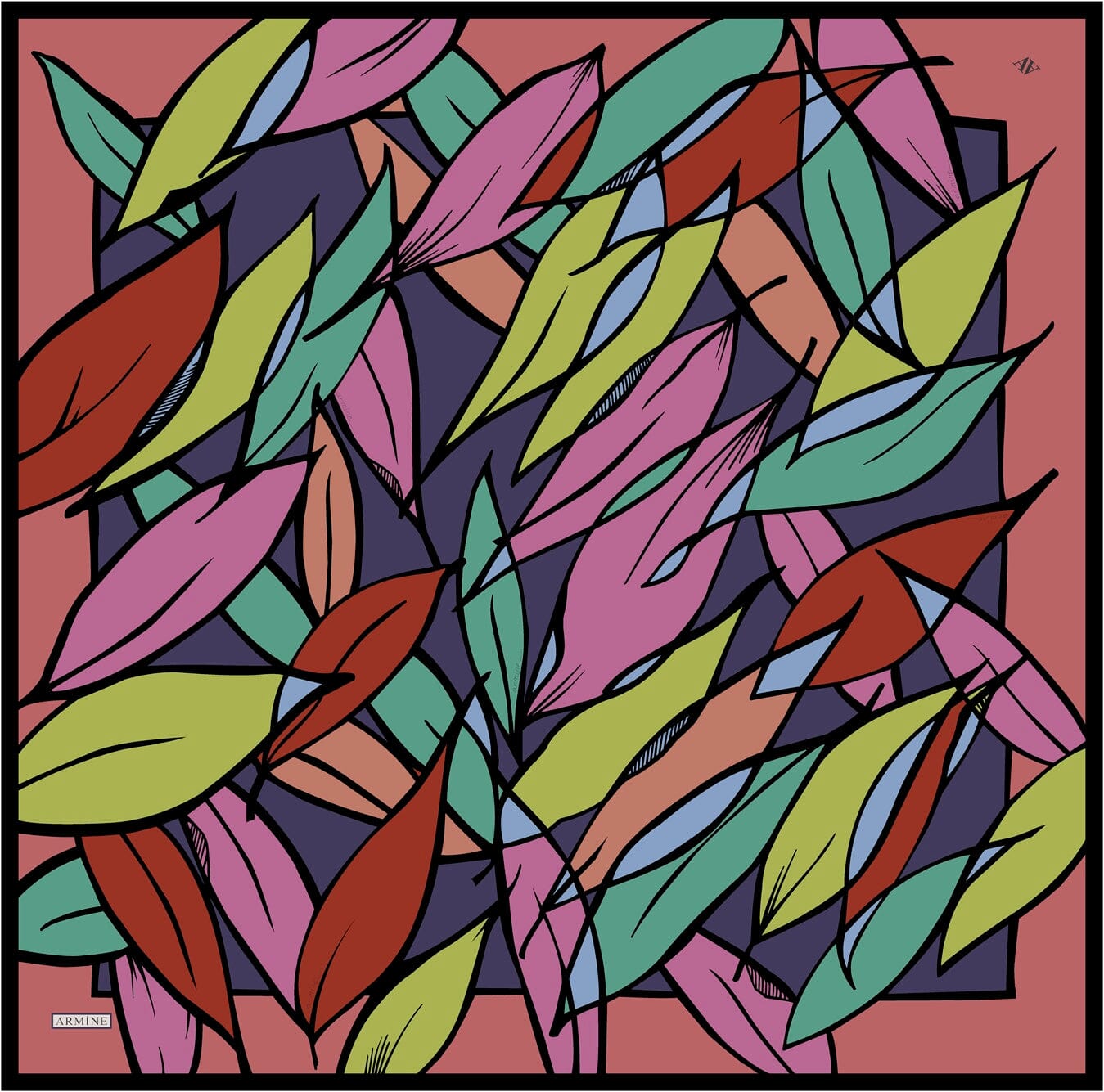 Create a lasting impression when you wear modern wearable art that features a modern leaf print design. This silk scarf is beautifully crafted for women who seek to be unique and stands out in their outfit.