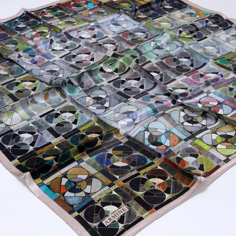 Show your trendy side with scarves from Mosaic collection. This pop-art designer silk scarf will add edginess to any ensemble. Perfectly rendered prints is an argument in favor of expanding your collection. Go uniquely bold this season.