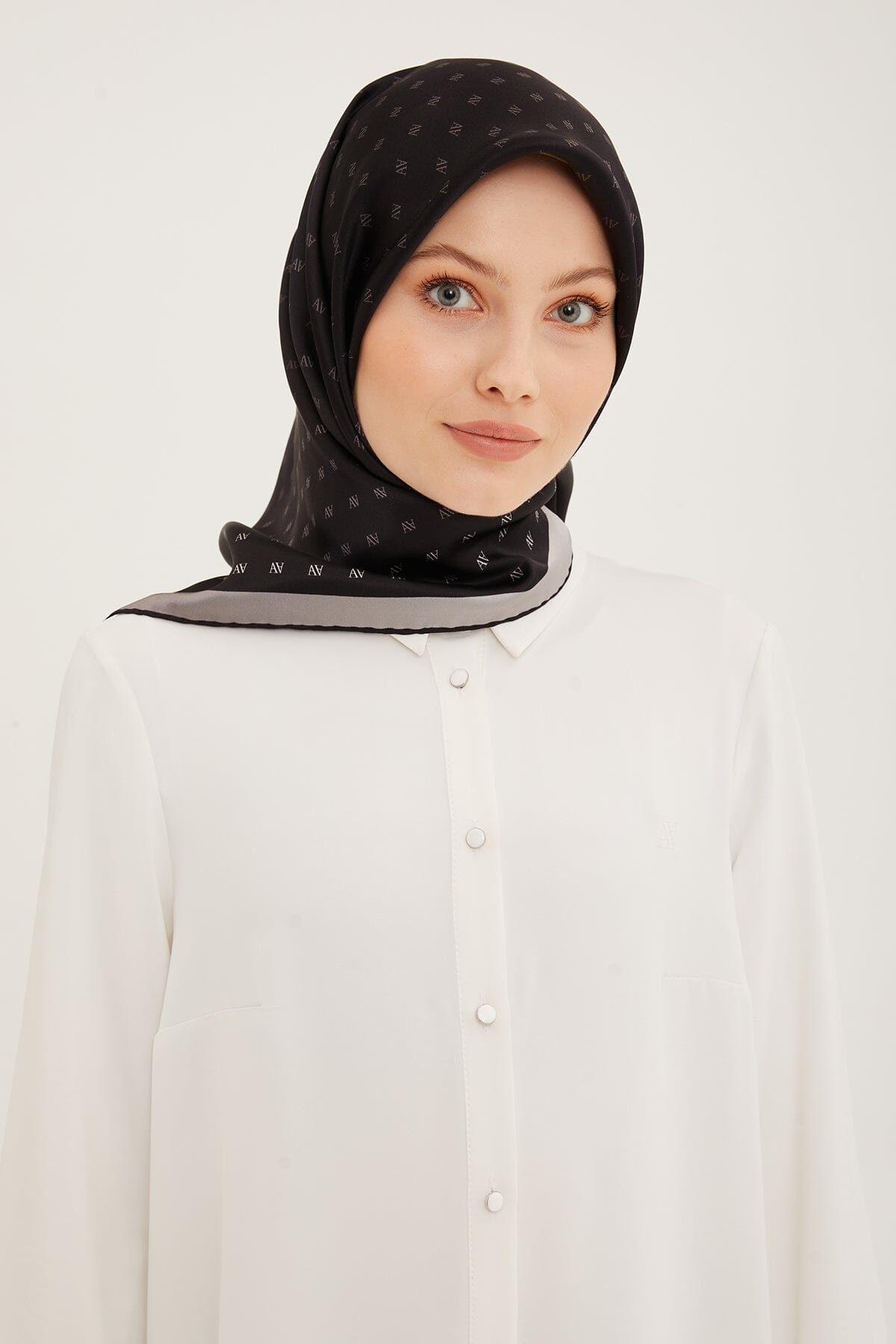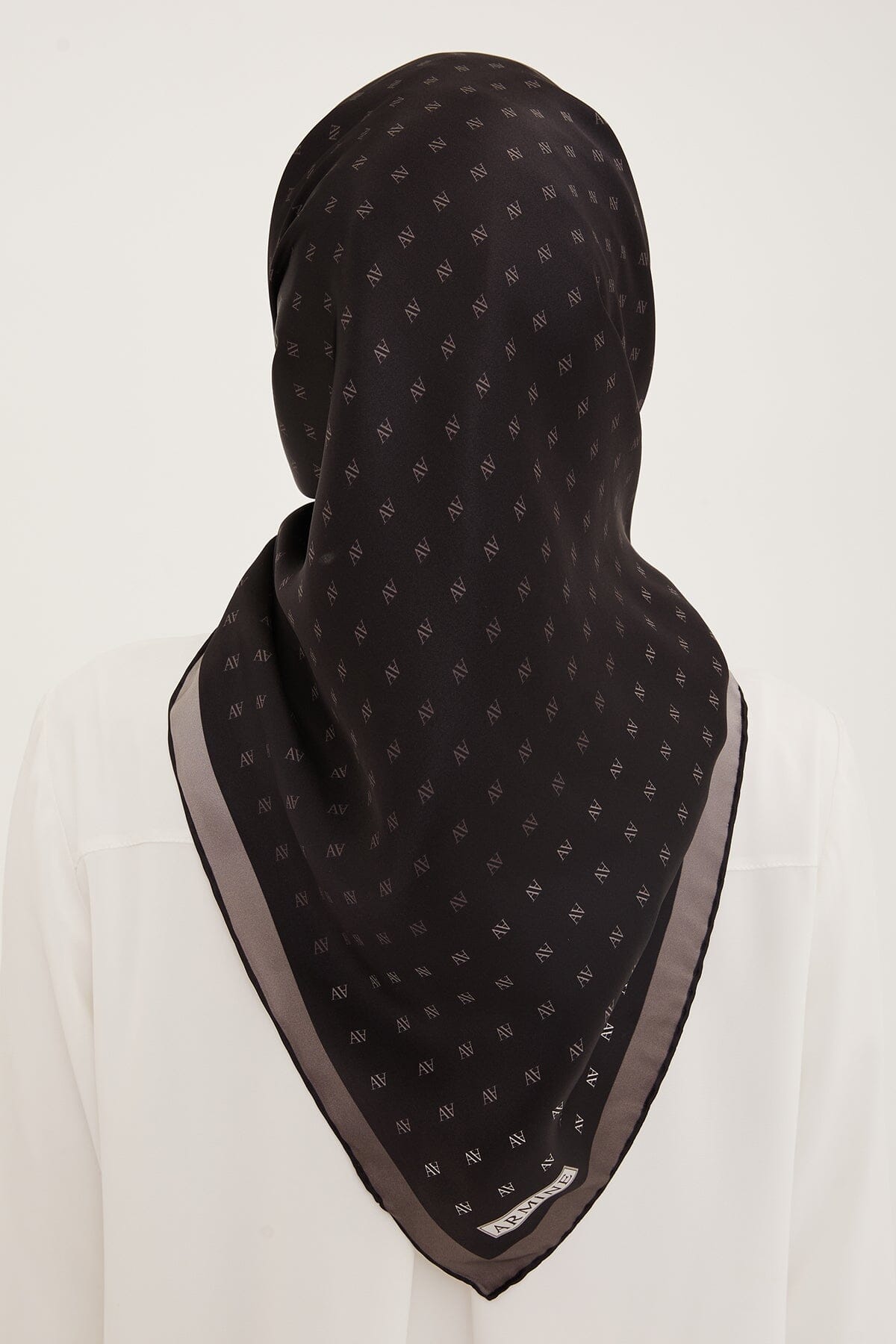 Add edgy and chic to your casual wear while achieving the perfect drapes and awning whichever your style. The scarf is printed with a silhouette of Armine AV logo for a subtle print that makes it a versatile scarf to match anything in your wardrobe, creating endless looks from day to night.