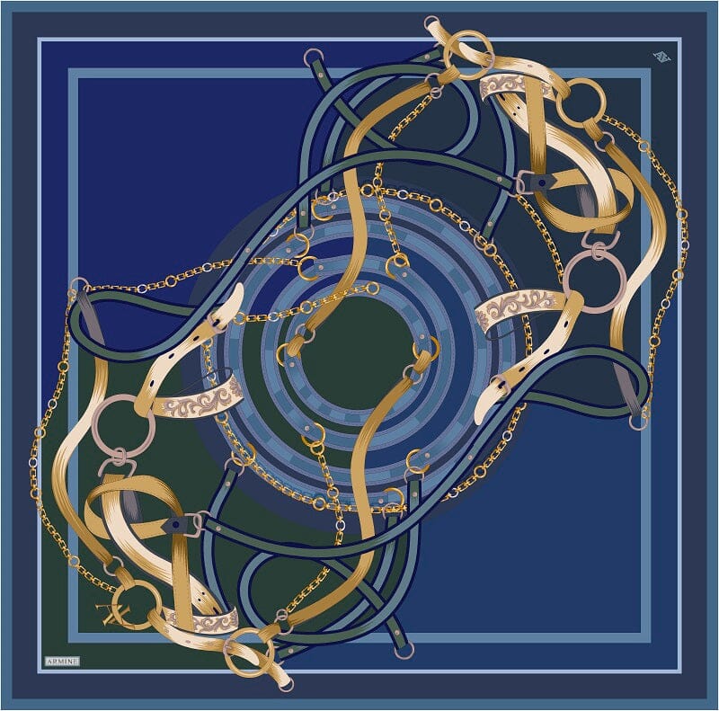 Elevate your style with this exquisite Turkish silk scarf, crafted from the finest silk for a luxuriously soft feel and elegant drape. Featuring an intricate equestrian-inspired design with ornate bridles and gold-tone chain details, this scarf embodies sophistication and timeless charm.