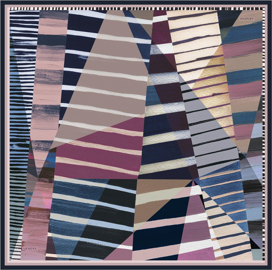 Inspired by geometric pattern, this silk scarf is abstractly designed for modern chic. Wear this scarf to make a fashion statement. Perfect as a head scarf, or a turban.