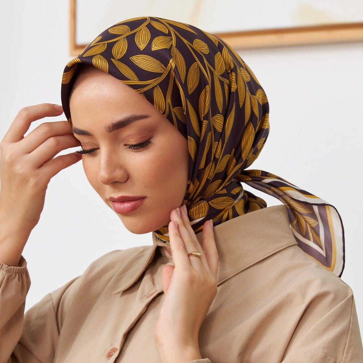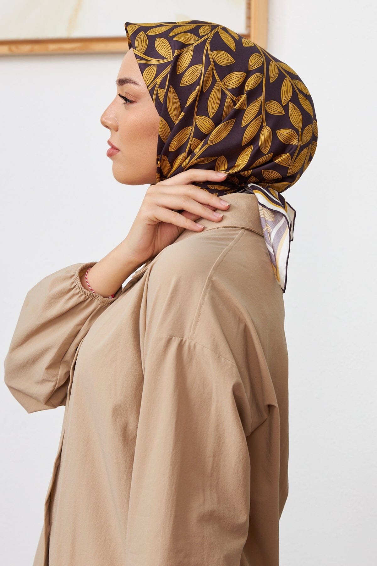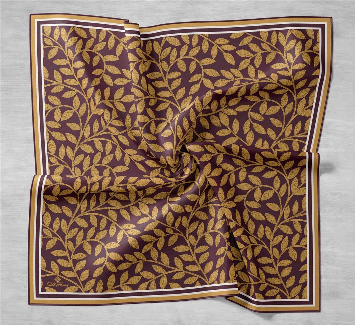 This luxurious, sophisticated SilkHome Laurel Women Silk Scarf #48, crafted of 100% pure silk twill, is an elegant hijab with a beautiful laurel leaf pattern, perfect for making you look and feel your best.