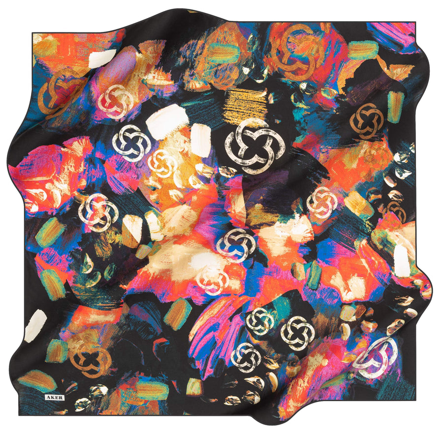 Bu lüks ipek eşarbı başörtüsü olarak veya göz alıcı bir türban olarak taktığınızda imza görünümünüzü yaratın, bu sanat eseri üst olarak da giyilebilir. Modern sanattan ve Aker logosundan ilham alan bu ipek eşarp, zamansız bir parça olacak. mevsimler arası