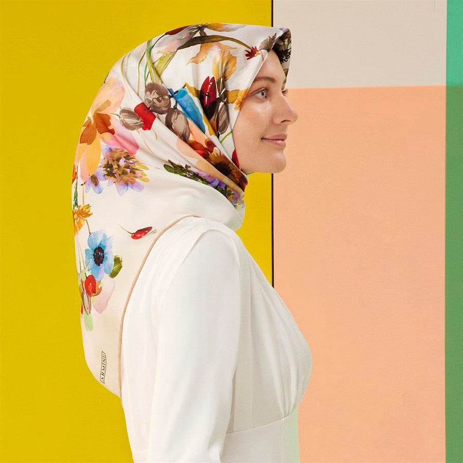 Armine Potpuri Çiçekli İpek Eşarp No 1