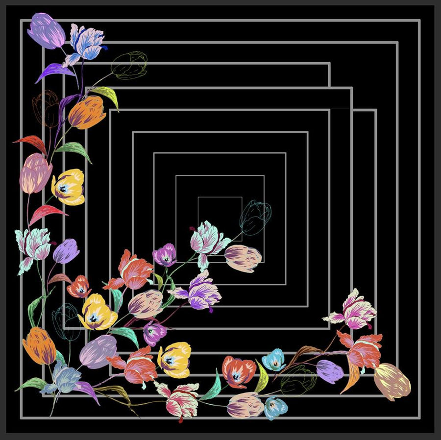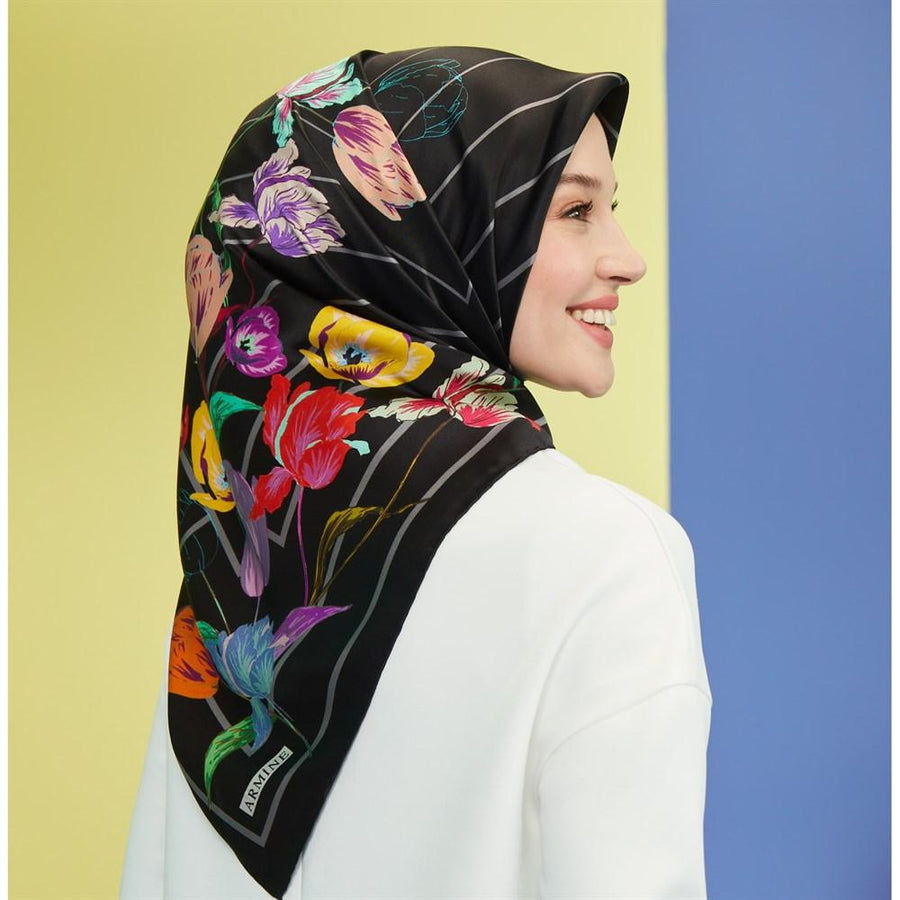 Armine Romanze Çiçekli İpek Eşarp No.1